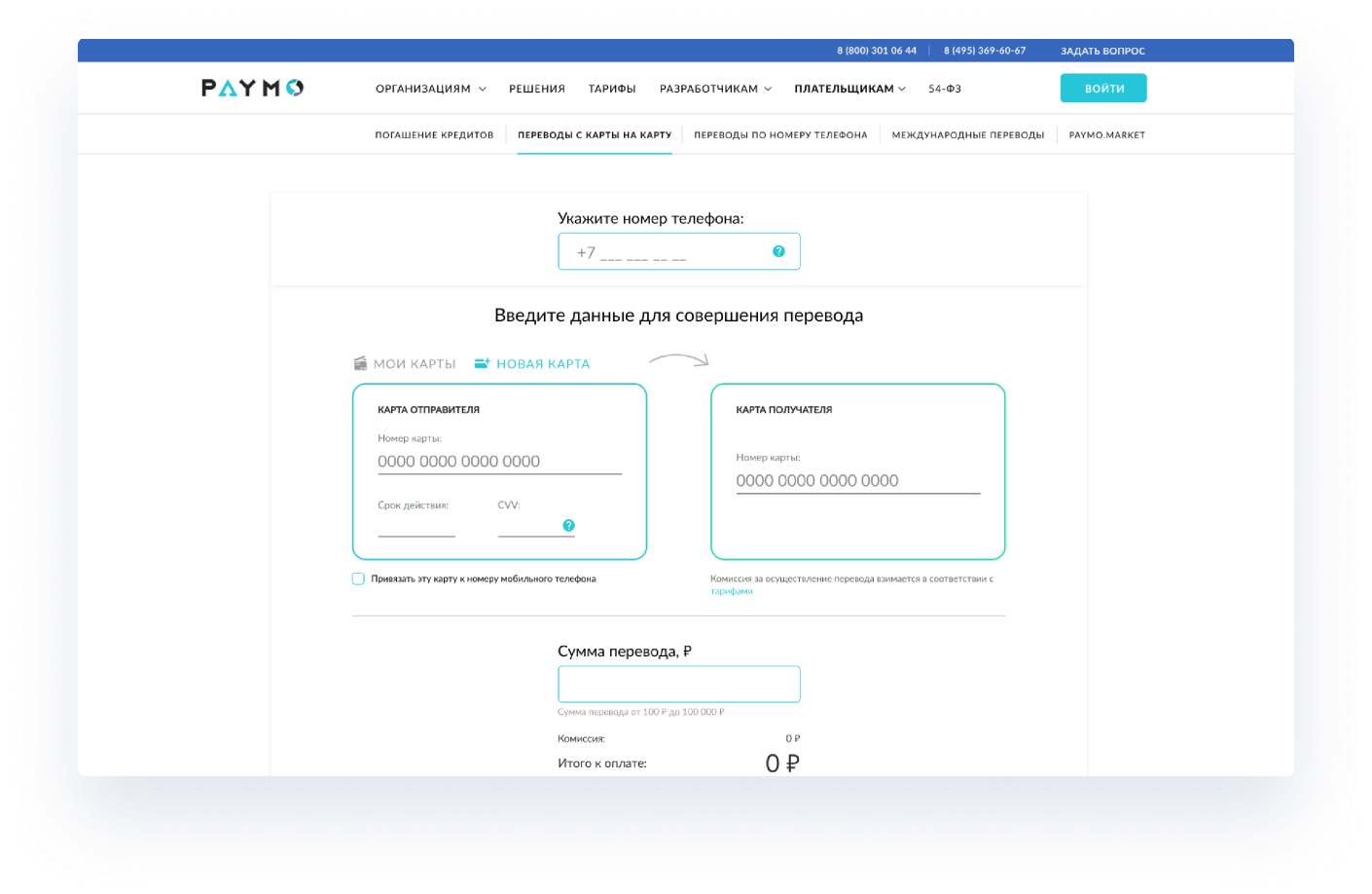 средств на карты любых эмитентов: займы, зарплатные проекты,